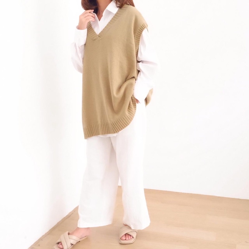 Knit Vest Rajut Wanita Rompi Korea fashion muslim atasan Sumber : shopee.co.id
